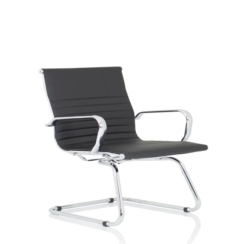 Nola Black Leather Cantilever Visitor Chair with Arms